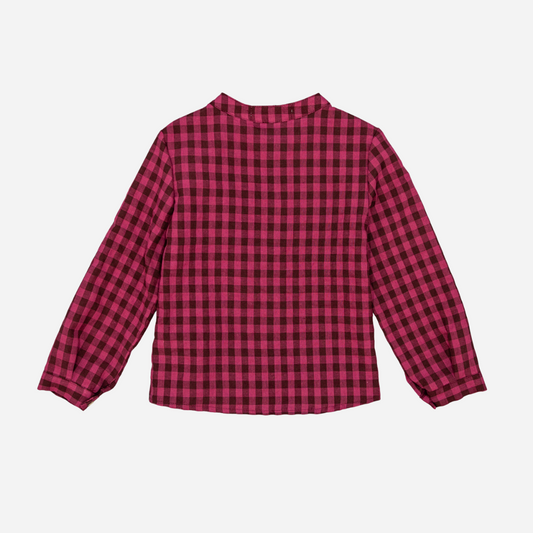 • Sold at Bombon shop, designed by MarMar Copenhagen. Red and navy checked long-sleeve cotton shirt with round collar, pairs perfectly with the matching navy pants.