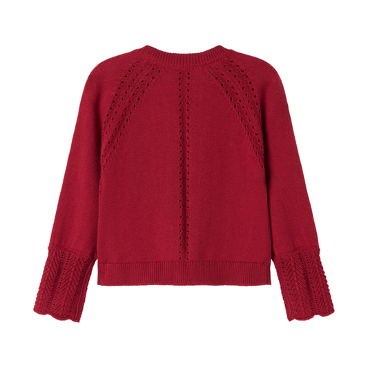 • Sold at Bombon shop, designed by MarMar Copenhagen. Deep red knit baby cardigan with scalloped cuffs, pairs perfectly with the red plaid bloomers and embroidered collar bodysuit.