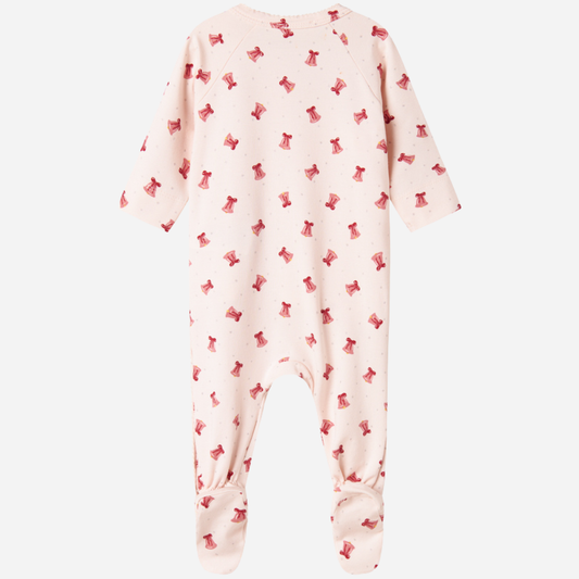 • Sold at Bombon shop, designed by MarMar Copenhagen. Blush pink baby wrap footie with delicate pink bell print, pairs perfectly with the matching hat and blanket.