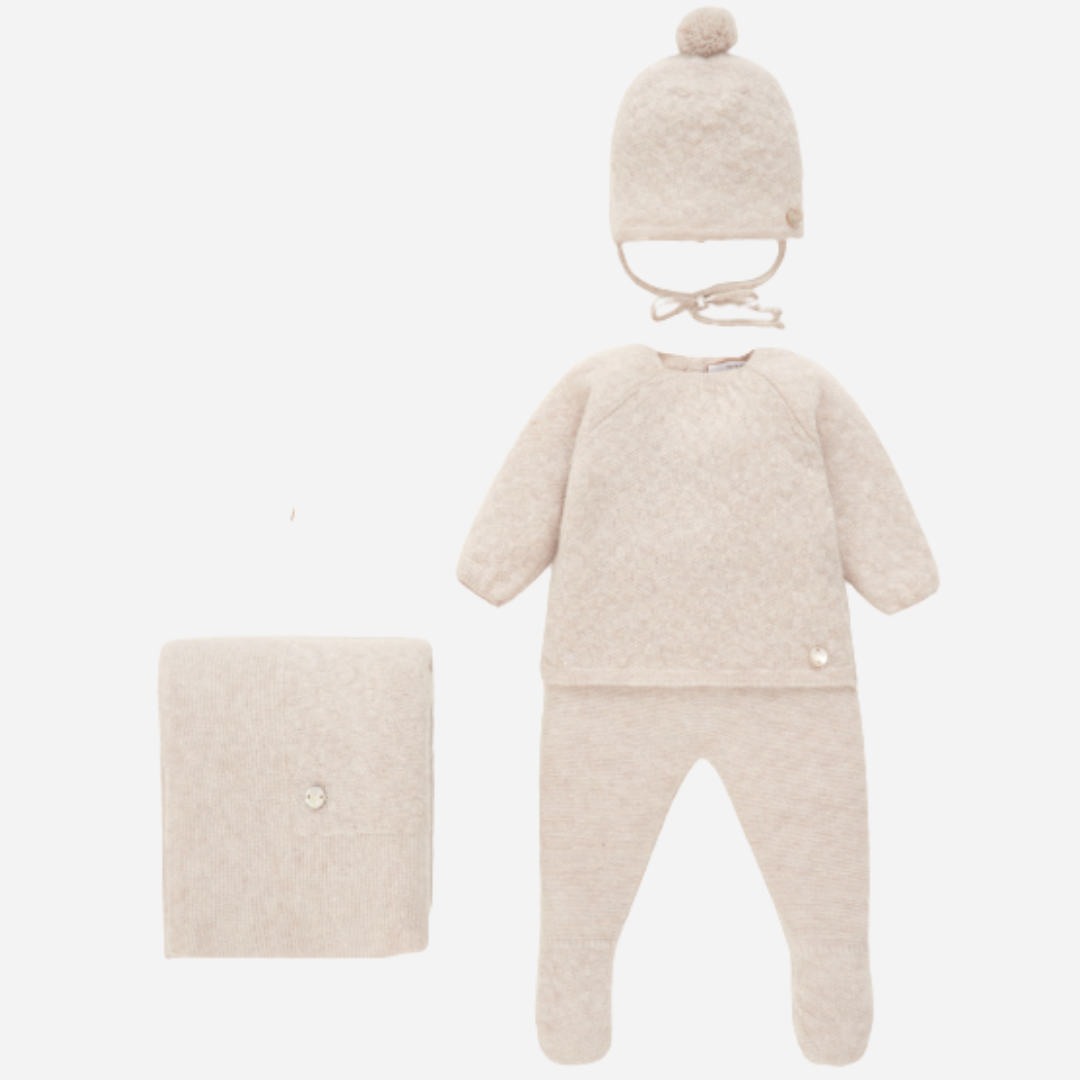 A cozy finishing touch to any fall or winter outfit, the Essentia hat by Paz Rodriguez is crafted in soft textured knit and topped with an adorable pompom. The chin ties ensure a snug fit, keeping baby warm and stylish all day. Pair it with the Essentia jumpsuit and Essentia blanket to complete the look.
